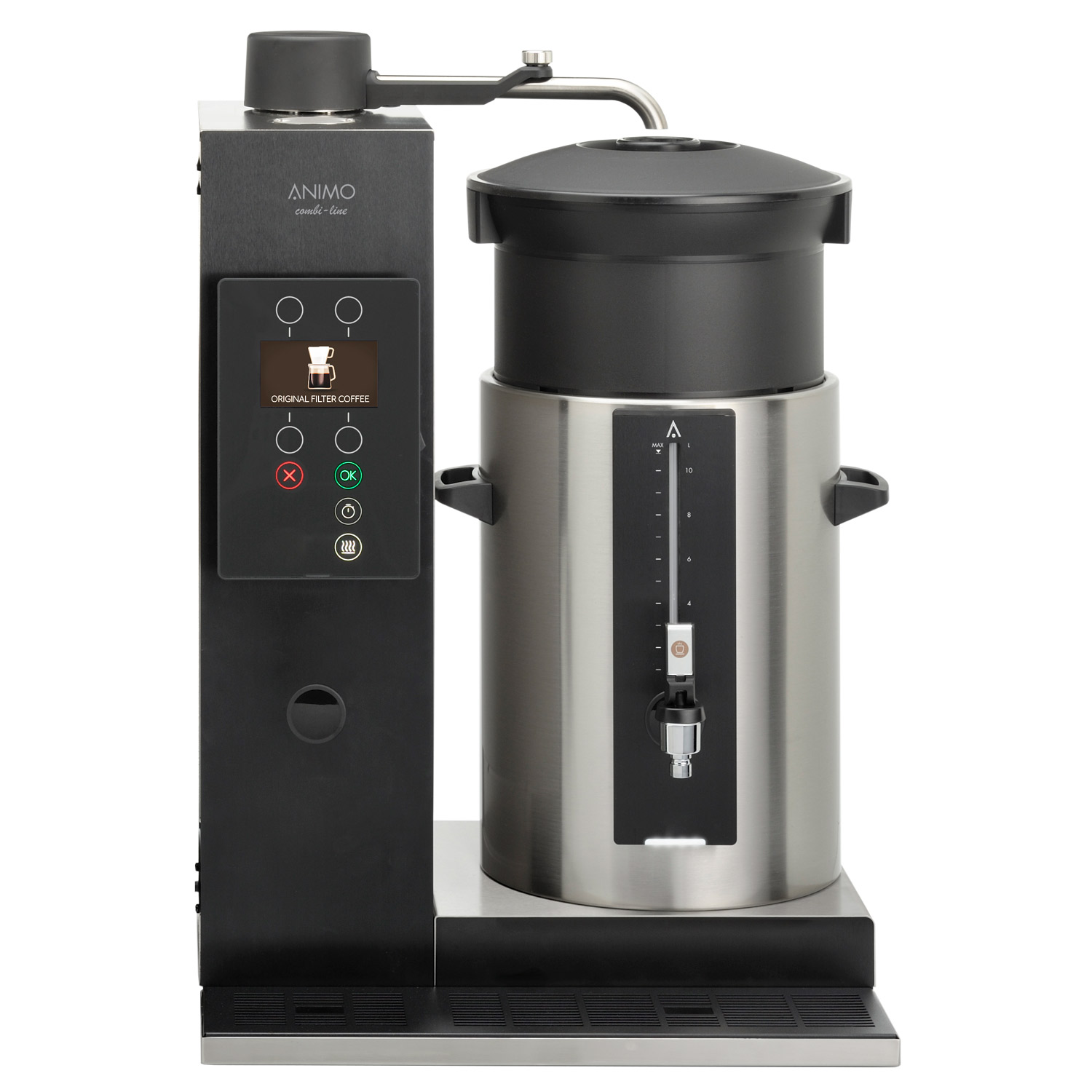 – the amount of brewed filtered coffee can be selected in litres or