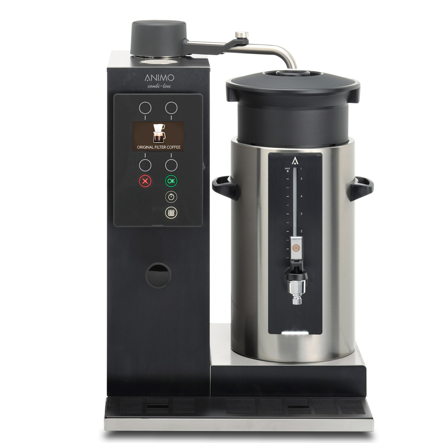– the amount of brewed filtered coffee can be selected in litres or