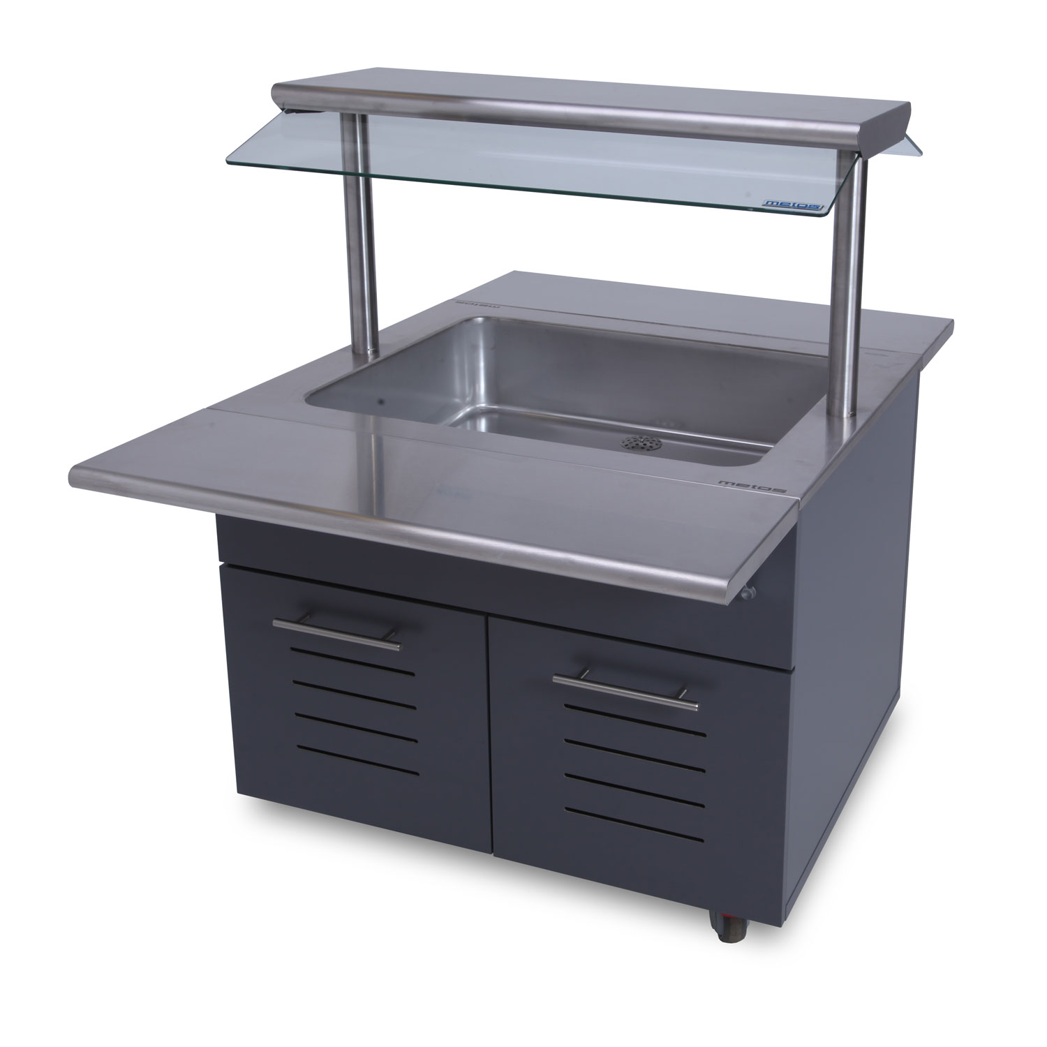 – stainless steel fold-down tray slides on both sides, depth 250 mm