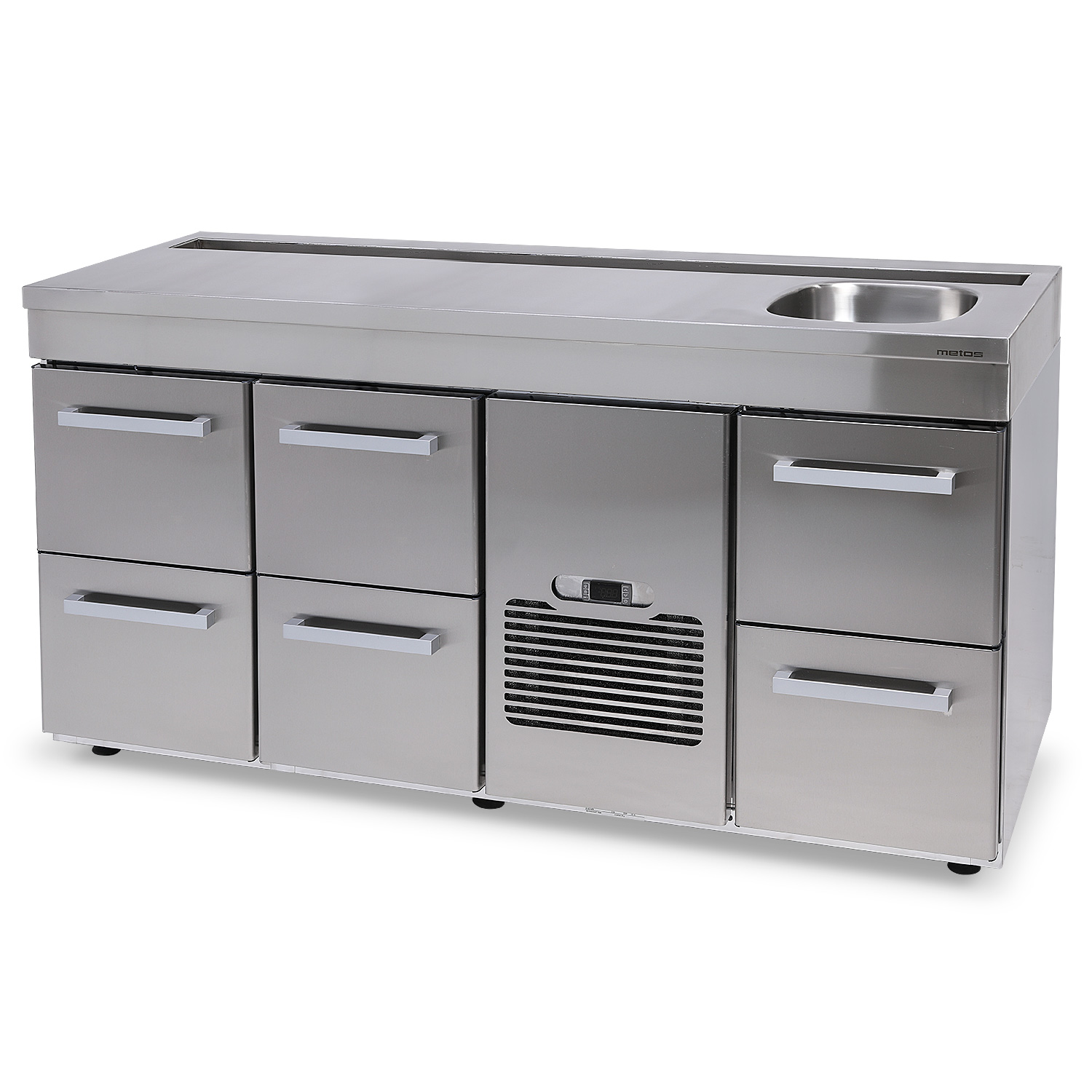– bar worktop with a spout for bottles and a sink(with drain) for ice