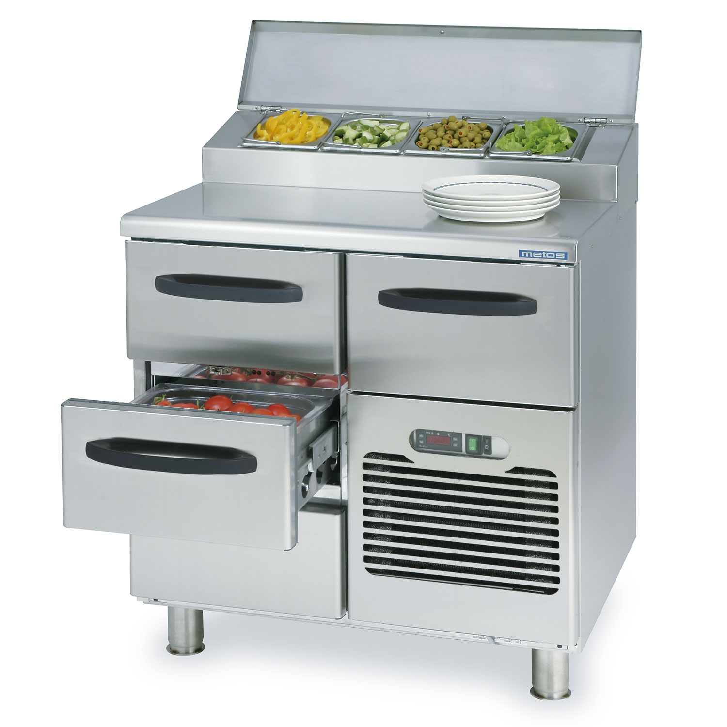 – saladette with heightened basin for 2 x GN 1/3 and cold drawer