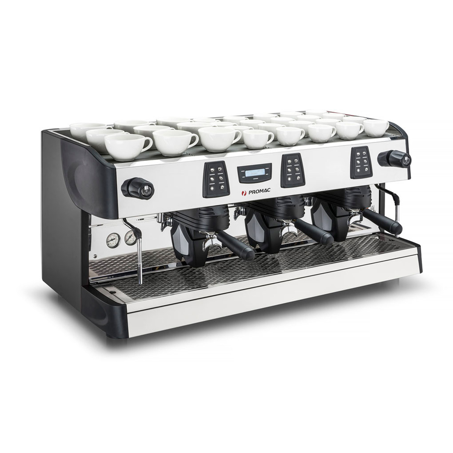 – three coffee groups, two steam taps and a hot water tap
