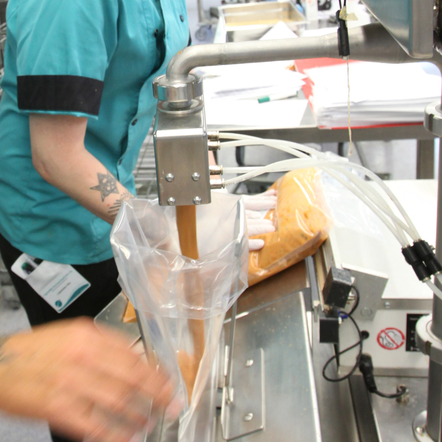 Metos Hot Fill -pumput on tarkoitettu nestemäisten tuotteiden nopeaan annosteluun suoraan padasta pussiin tai astiaan. Keitot, kastikkeet ja perunamuusit jaetaan vaivattomasti. Sisäänrakennetun vaa’an ansiosta tuotteen punnitus tapahtuu yhden ja saman työvaiheen aikana automaattisesti. Annosteluprosessin vaihtaminen pusseista astioihin käy kätevästi.