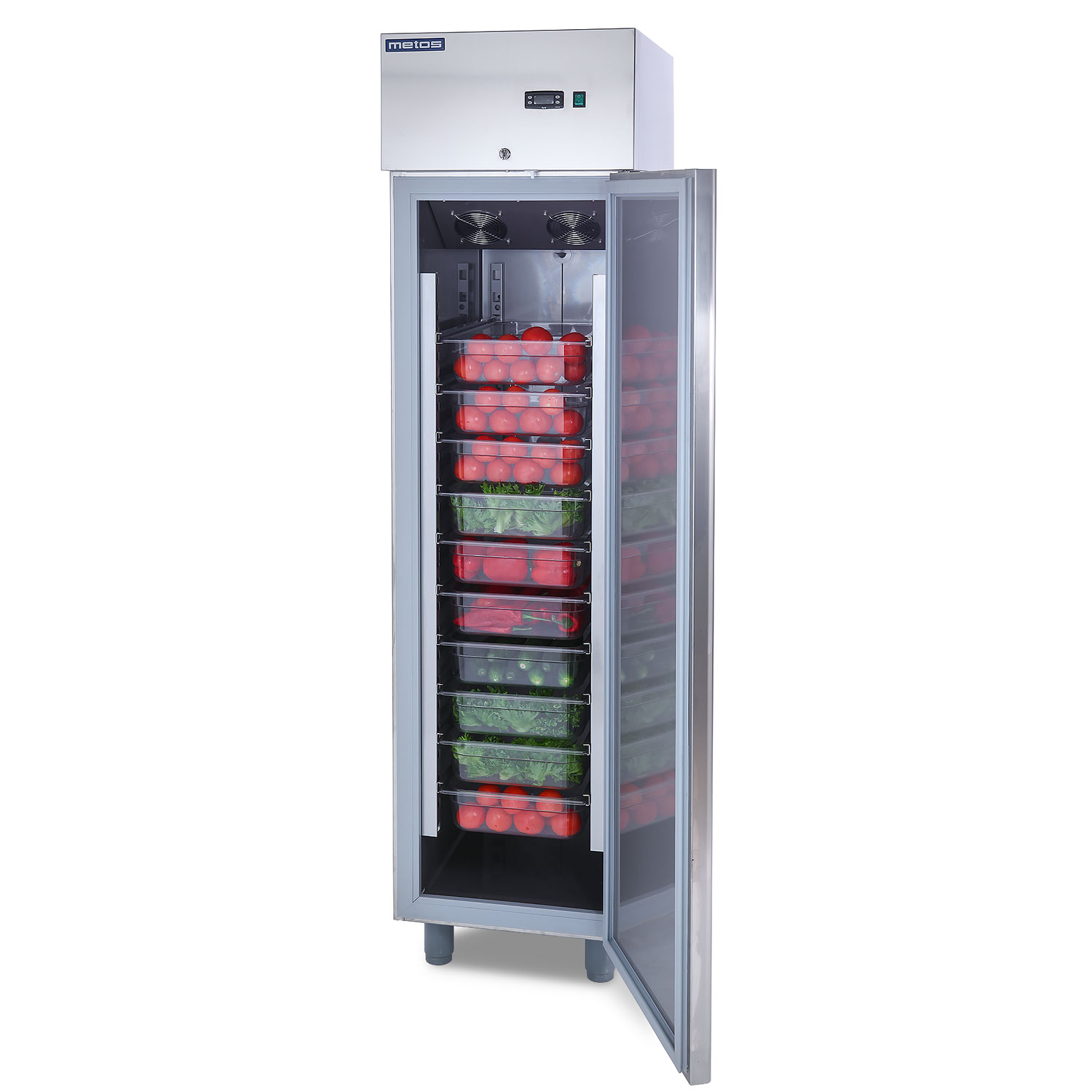 – hermetic air cooled cooling unit in the upper part of the cabinet