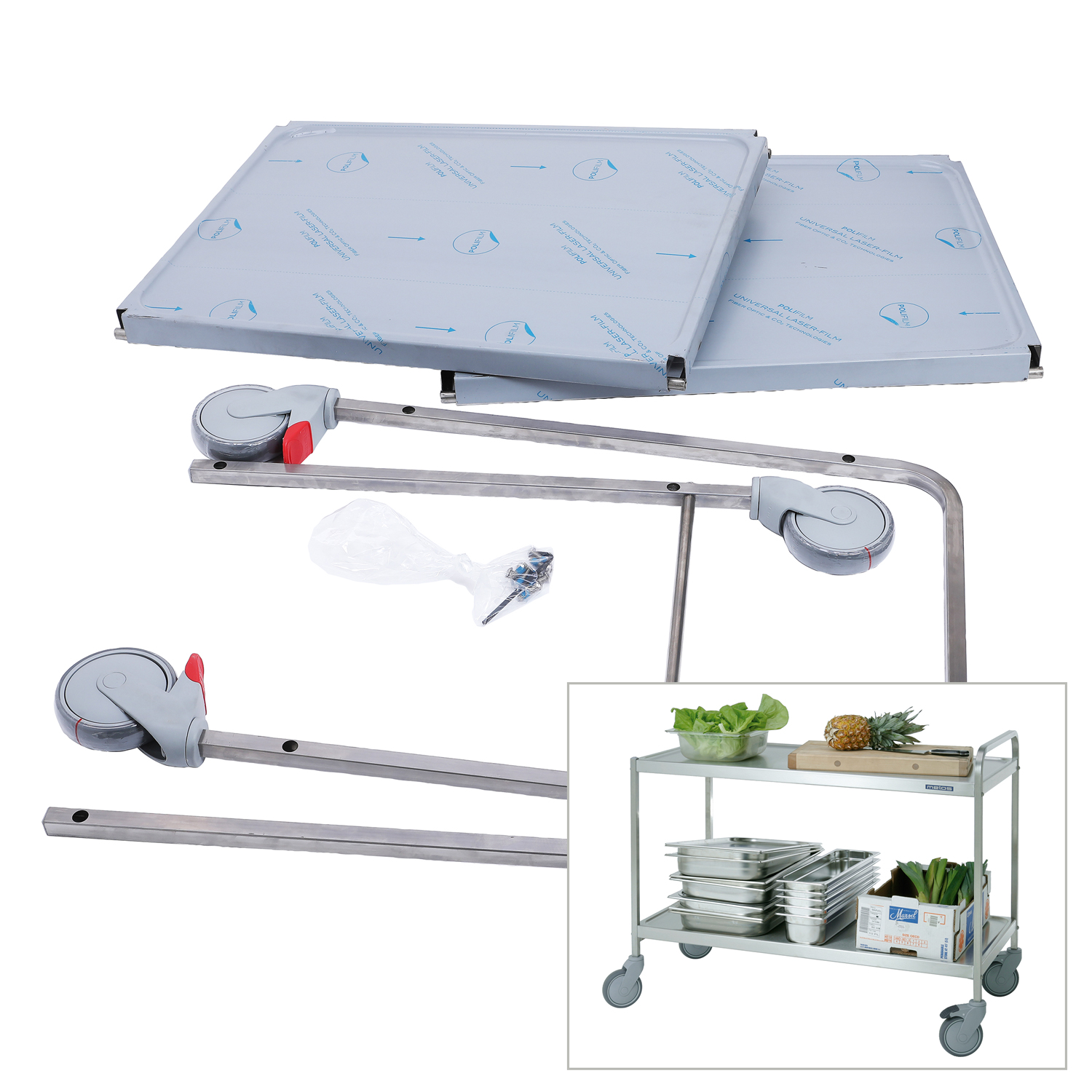 – Ball bearing wheels Ø 125 mm, two with brakes