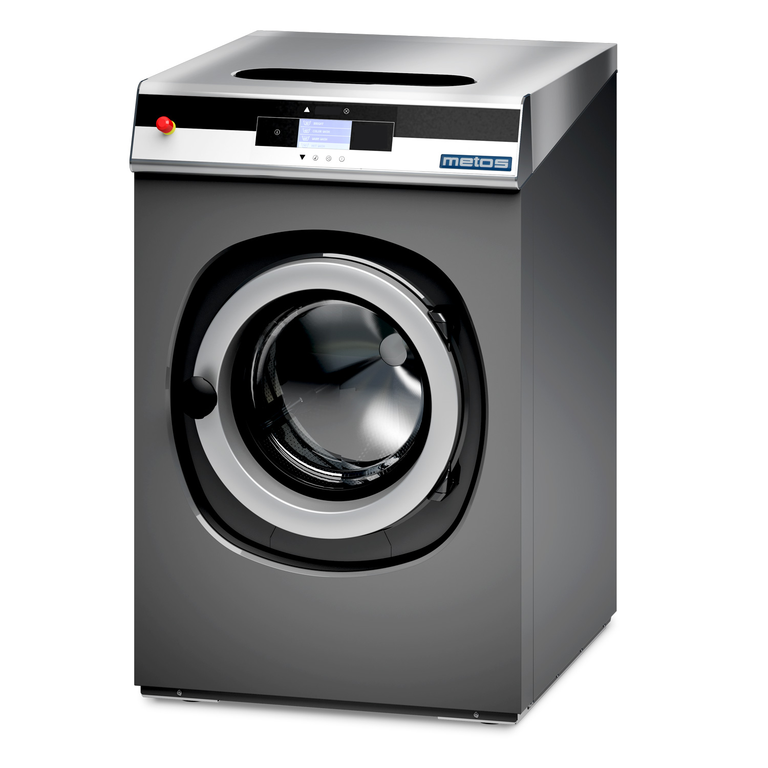 – freestanding washer with stainless steel top panel and anthracite grey